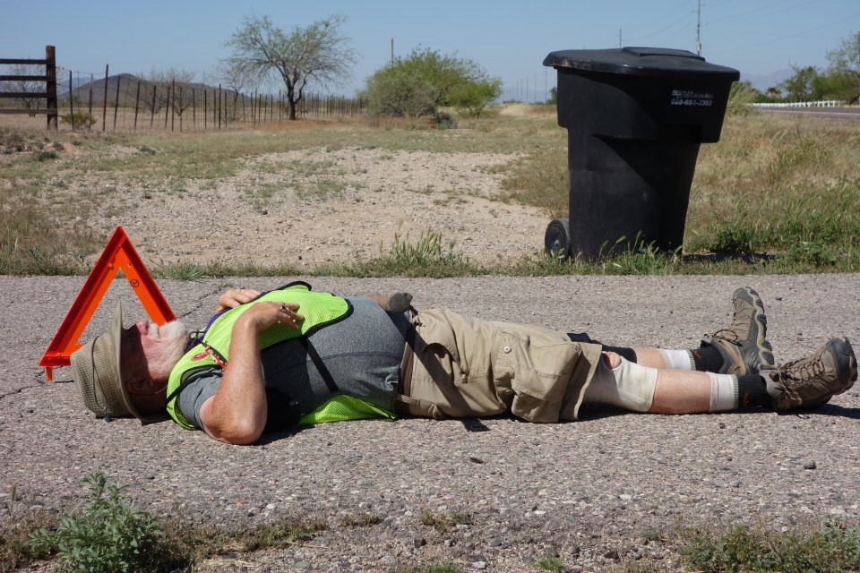 Rev. Bob Cook takes a break near Aguila, AZ