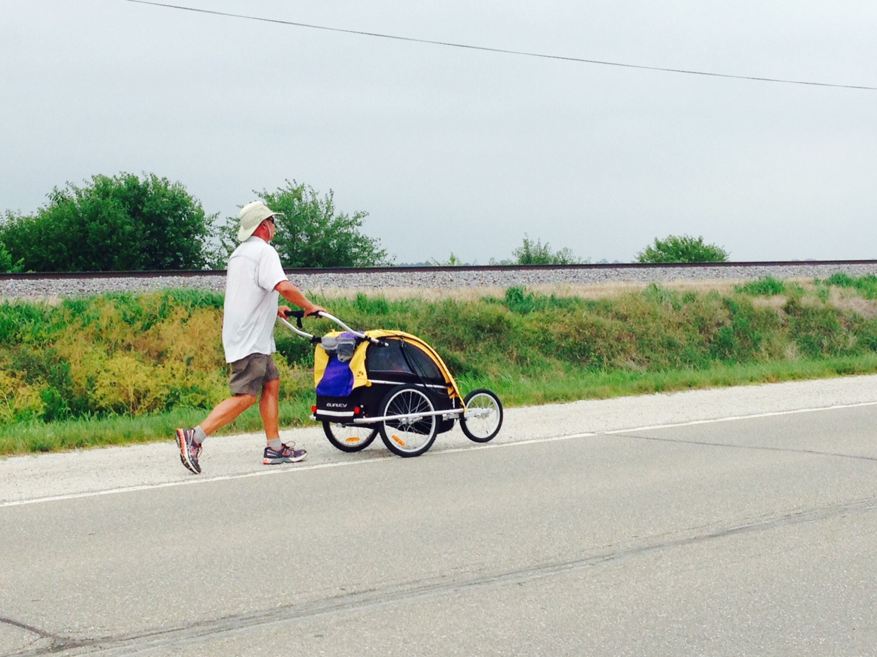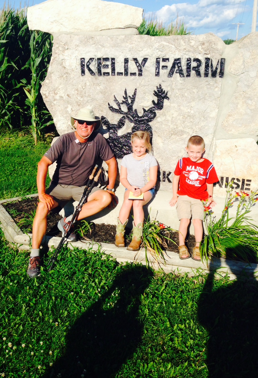 Illinois was a difficult time for day one. The road turned narrow and shoulder nonexistent. I had to stop each time a truck passed and put one leg down the steep shoulder embankment to make some room. It was challenging. When I finally reached Biggsville it was after 6pm and I was tired. I noticed a white van stopped on the side of the road with kids and their parents watching me walk up the road. The father came out first and said, “ Did you have your picture taken with a lady back in Burlington today? She’s a friend of ours. We saw you’re walking across country for a cause … What is it?” A short conversation followed and they asked for a photograph with their kids … and their little girl wanted my autograph! Nice ending don’t you think?