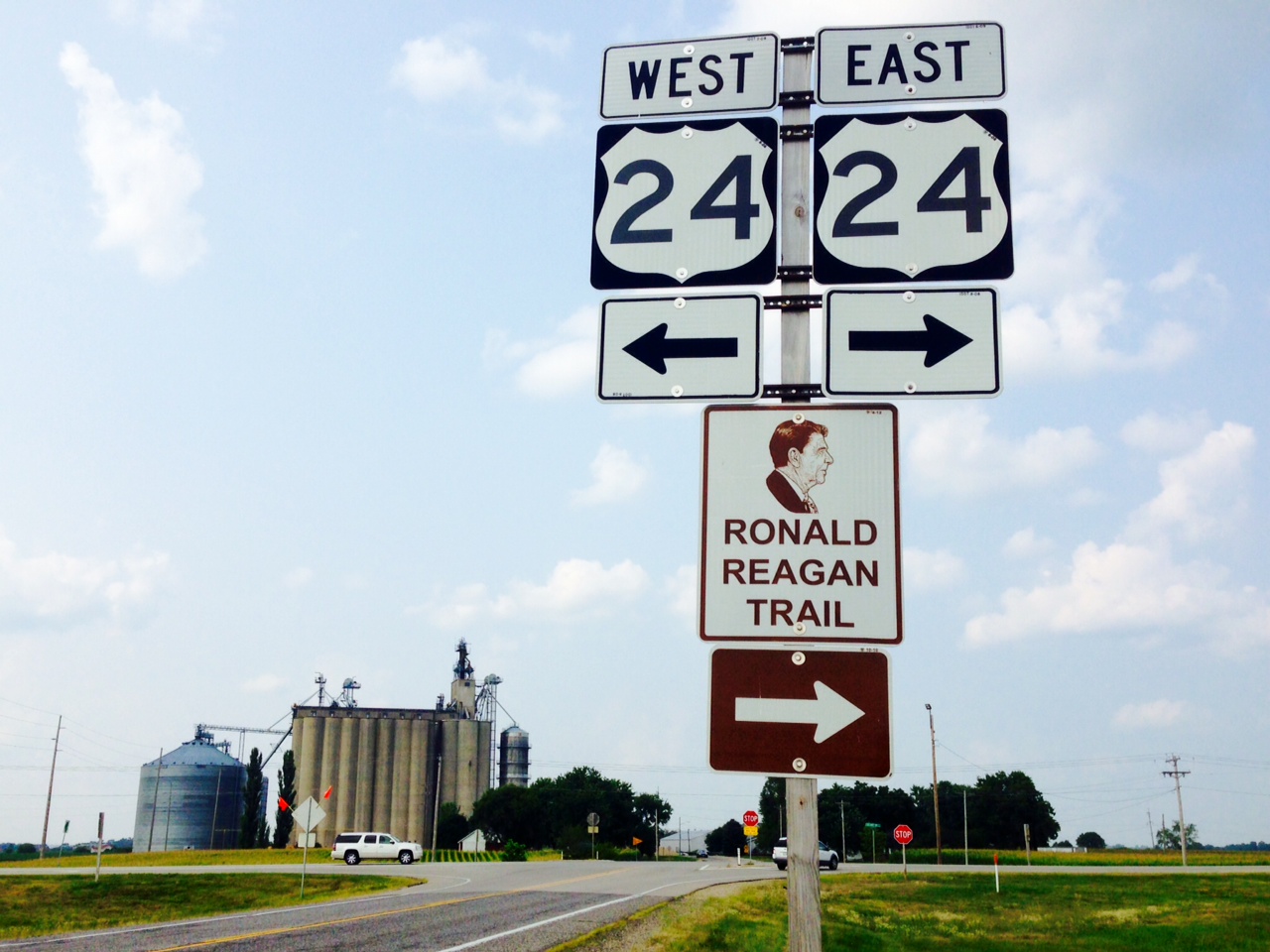 Its been a number of days since I walked out of Peoria and began the trek east toward Indiana. I ate my way out of Peoria. Breakfast sandwiches and old, local bakeries in East Peoria were but starters for this Western Kentucky grub worm. Later came chicken noodles ladled over mashed potatoes, ice cream cones, and iced tea wherever I could find it to break the heat. With all this eating I still managed to get 19 miles out of the city and began to see the !Illinois heartland. This is Ronald Reagan’s countryside.